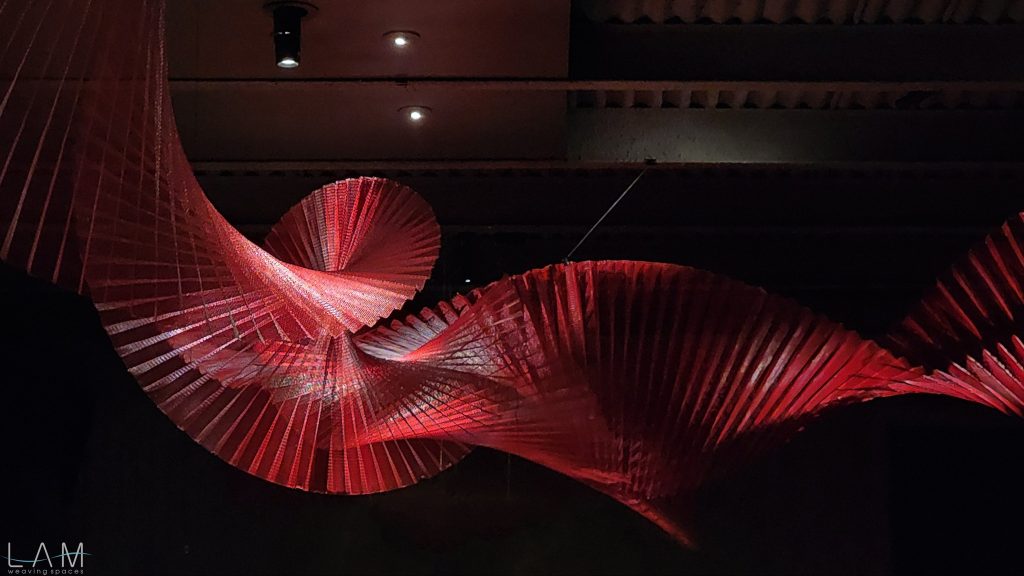 Không gian sắp đặt tại đây mang đến một cảm giác mạnh mẽ và khác biệt thông qua vật liệu lưới sắt. Những tác phẩm sắp đặt treo trần được tạo thành từ những mảng lưới sắt uốn lượn thành các hình dạng xoắn ốc, vừa vững chắc vừa uyển chuyển. Các khối lưới sắt kéo dài theo nhiều hướng khác nhau, tạo ra không gian động đầy ấn tượng, nơi sự cứng cáp của kim loại tương phản rõ rệt với sự mềm mại của hình dáng.