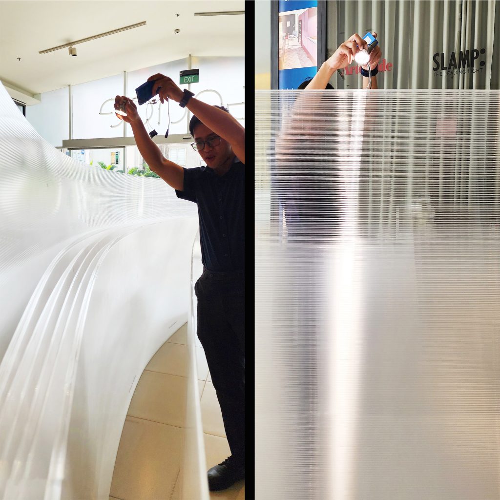“Sự kết nối, chuyển động, càng chuyển động xoáy như cơn bão càng tạo nên những nguồn năng lượng lớn hơn. Như bức tranh Starry Night của Vincent van Gogh, nhìn vào ta có thể cảm được năng lượng của sự chuyển động này.” một lời nhận xét từ Chú Thống. LAM hình tượng hóa hình hài của gió bằng những “lớp lang” được gắn kết với nhau để tạo nên một chỉnh thể. “Kết cấu tự thân” là cụm từ LAM sử dụng cho phương án thiết kế và thi công lần này. Sử dụng chính những tấm vật liệu polycarbonate mỏng, giữ chiều dài nguyên khổ, uốn cong – cài-then để tổ hợp thành cấu trúc ổn định. Vì tối giản được vật liệu, kỹ thuật nên công tác lắp dựng được triển khai rất nhanh. Nhờ cộng tác cùng đội ngũ chuyên về giải pháp chiếu sáng CARA – Lighting Solutions nên đã thực thi được ý tưởng về chiếu sáng tương đối khó cho loại vật liệu lần này.