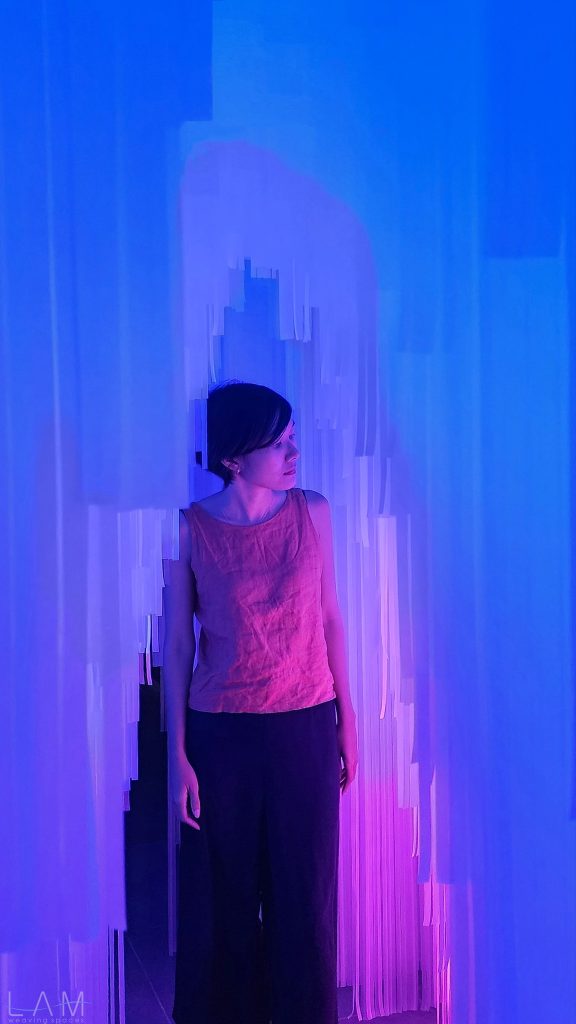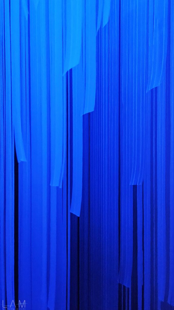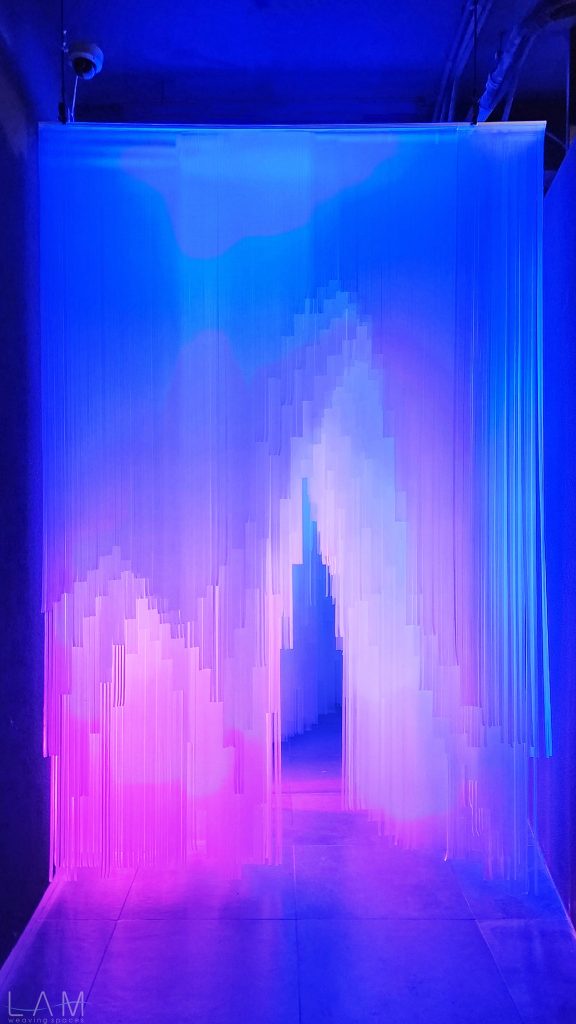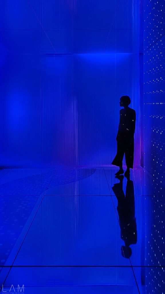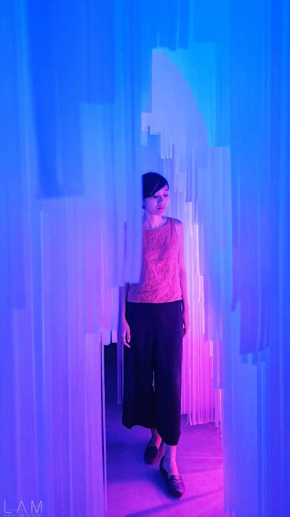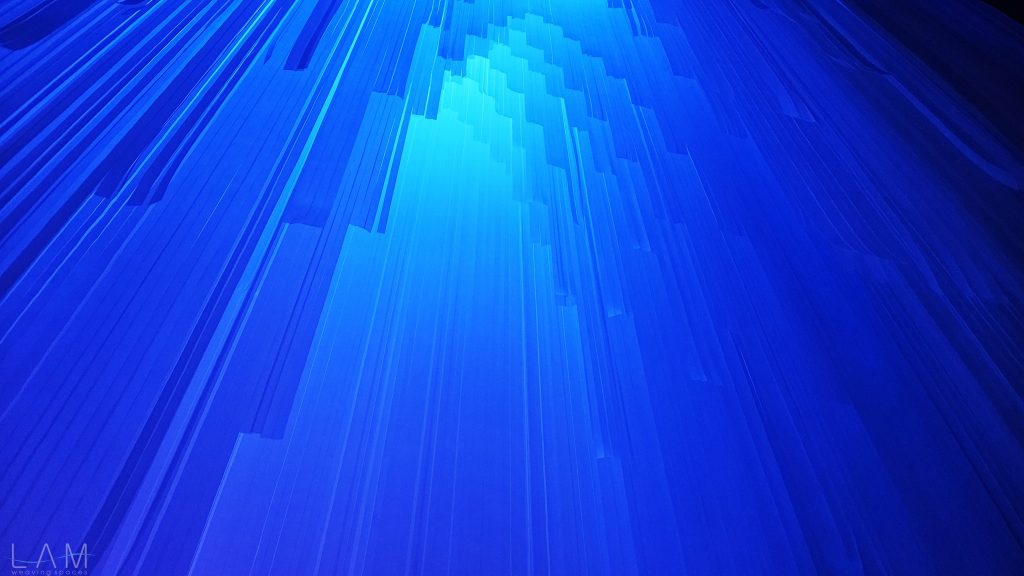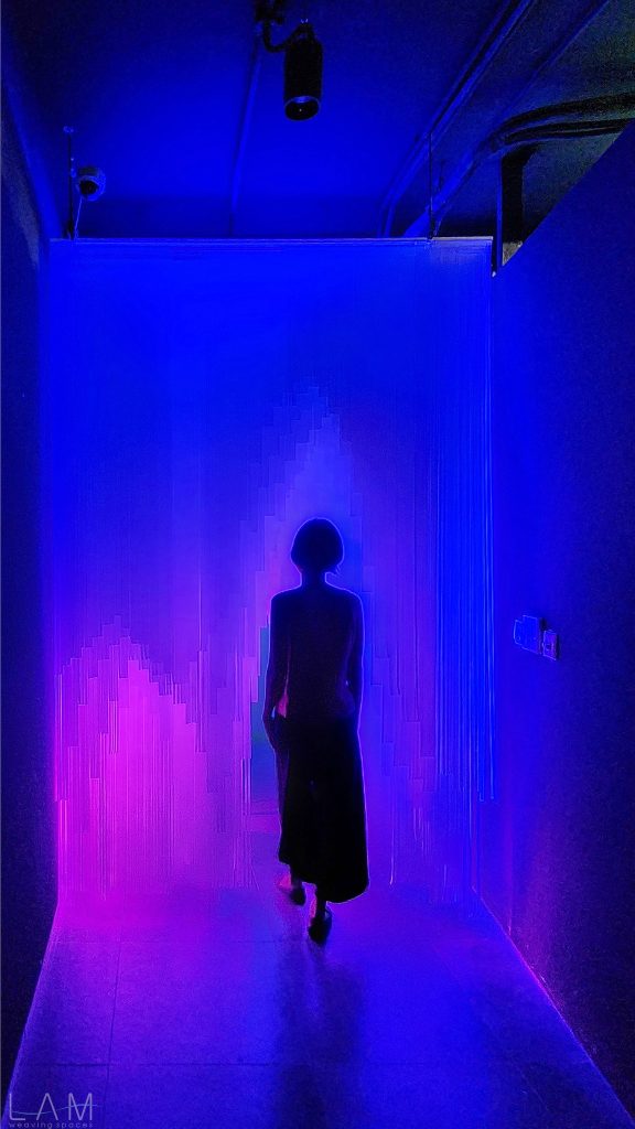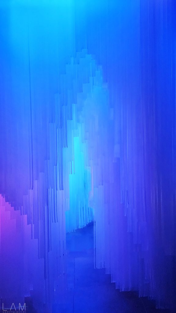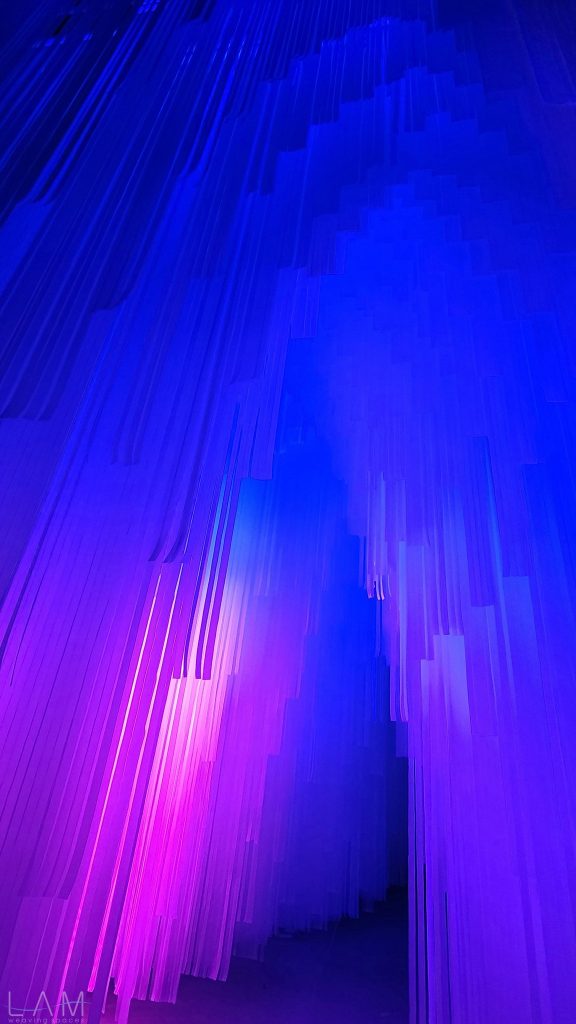 LAM tham gia thiết kế phòng Big Bang, nơi ‘bùng nổ’ về hiệu ứng ánh sáng và trình chiếu đương đại. Với sự kết hợp của ánh sáng, khối vật liệu dẫn sáng trở nên huyền ảo, vô tận. Lối dẫn tuy ngắn, hẹp nhưng cũng kịp mang lại những cảm giác ‘bất định’ khi lạc bước vào đây. Các dải nhựa PVC cắt dài, mỏng và xếp theo dạng bậc thang tạo ra một hành lang hoặc cánh cửa ẩn hiện, dẫn dắt người tham quan đi sâu vào không gian trừu tượng. Cảm giác như đang bước vào một chiều không gian khác, với ánh sáng mờ ảo và không gian mềm mại, mờ nhạt. Sự kết hợp giữa ánh sáng, chất liệu và cấu trúc tinh tế khiến không gian trở nên dễ chịu và gợi nhiều cảm hứng, đặc biệt khi người xem đi qua các dải nhựa lấp lánh.