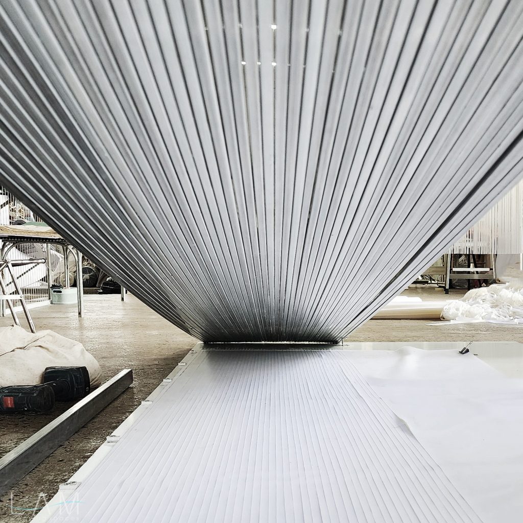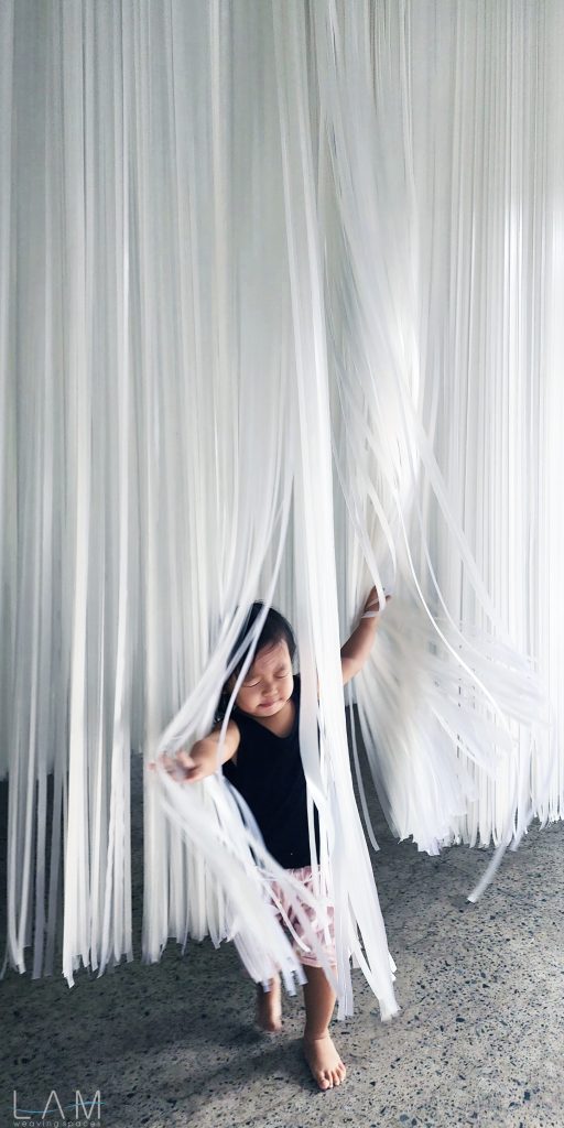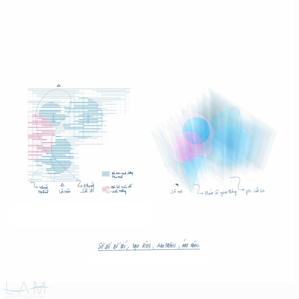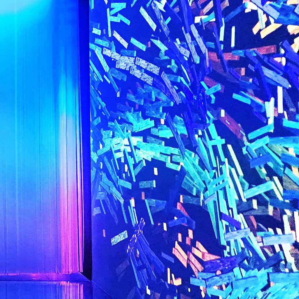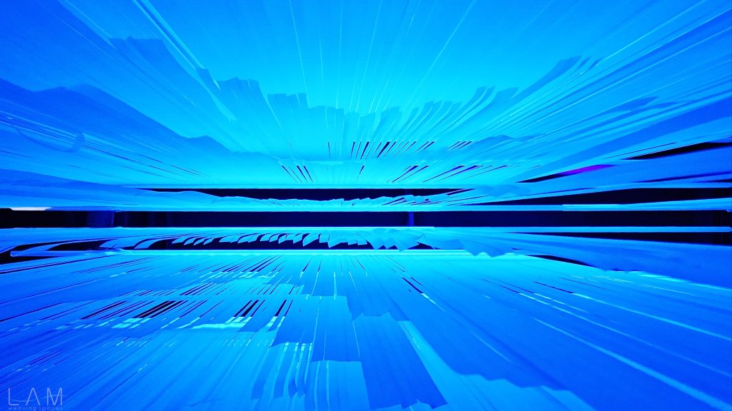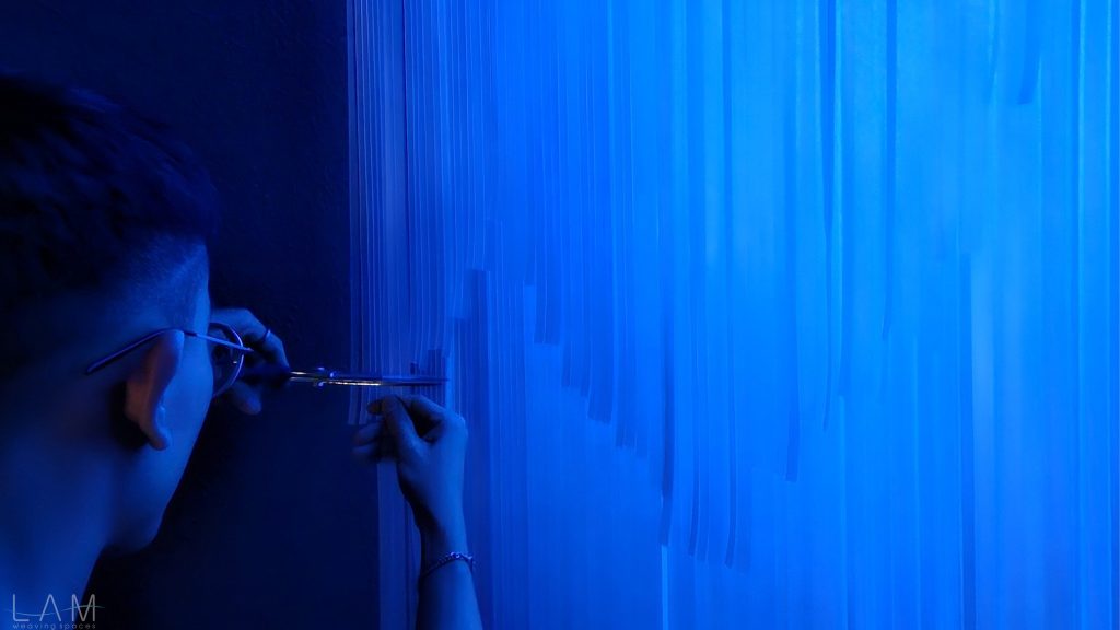 LAM tham gia thiết kế phòng Big Bang, nơi ‘bùng nổ’ về hiệu ứng ánh sáng và trình chiếu đương đại. Với sự kết hợp của ánh sáng, khối vật liệu dẫn sáng trở nên huyền ảo, vô tận. Lối dẫn tuy ngắn, hẹp nhưng cũng kịp mang lại những cảm giác ‘bất định’ khi lạc bước vào đây. Các dải nhựa PVC cắt dài, mỏng và xếp theo dạng bậc thang tạo ra một hành lang hoặc cánh cửa ẩn hiện, dẫn dắt người tham quan đi sâu vào không gian trừu tượng. Cảm giác như đang bước vào một chiều không gian khác, với ánh sáng mờ ảo và không gian mềm mại, mờ nhạt. Sự kết hợp giữa ánh sáng, chất liệu và cấu trúc tinh tế khiến không gian trở nên dễ chịu và gợi nhiều cảm hứng, đặc biệt khi người xem đi qua các dải nhựa lấp lánh.