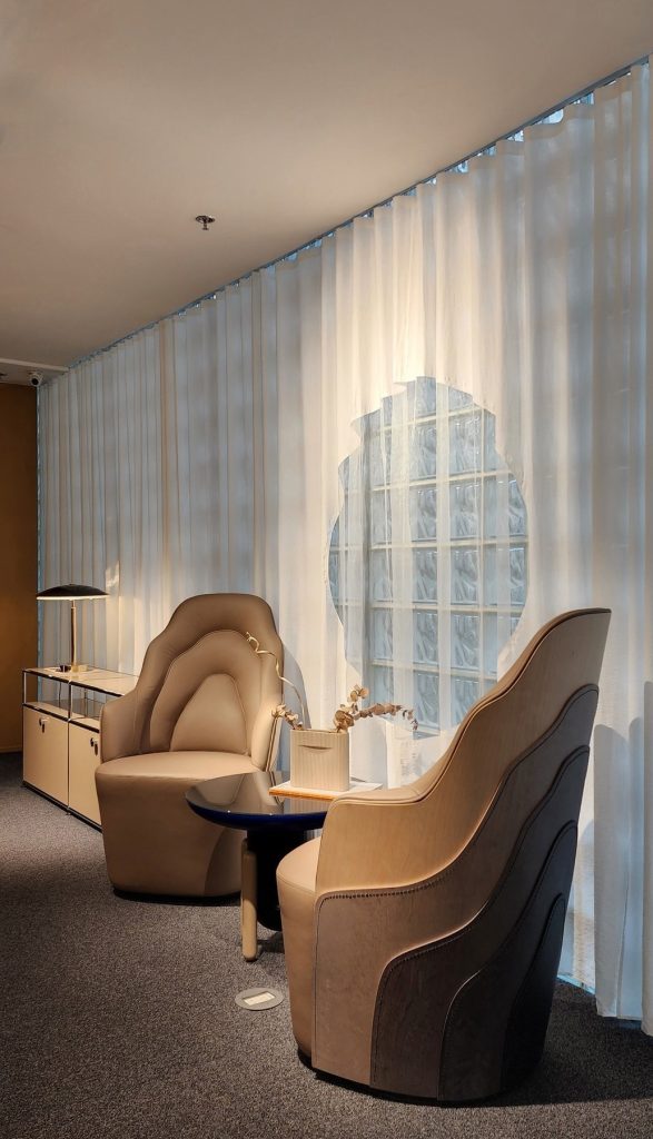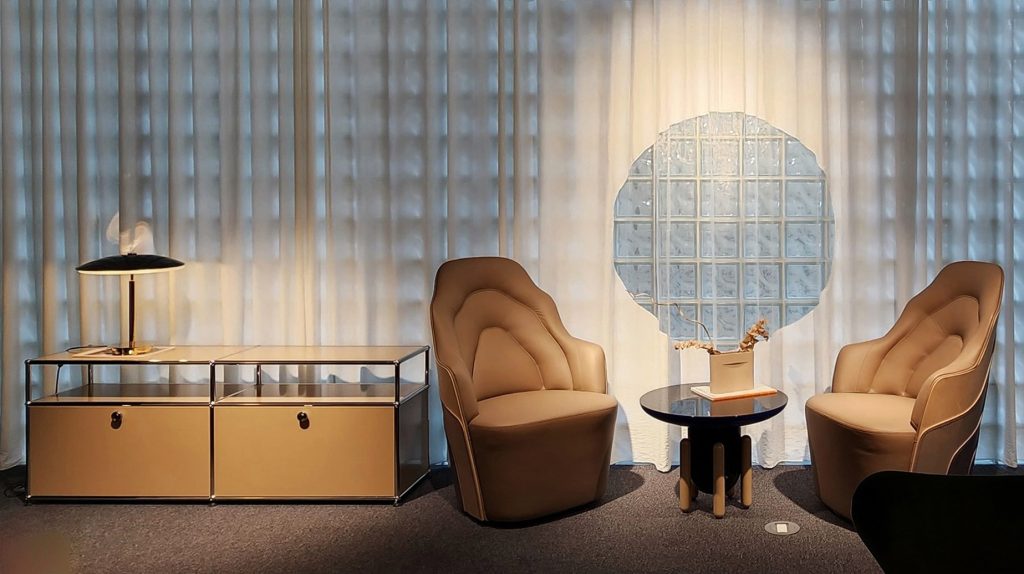 lam.weavingspaces had the opportunity to admire and learn about the furniture collections displayed at nanoHome. See the components and details inside the ‘smart joints’ of the USM Haller cabinet. The sophisticated wood stitching techniques on the COUTURE Armchair… Admire and learn about the Nanoco building – a project with very interesting architecture, construction techniques and materials. The above information created strong inspiration but also quite a bit of pressure for LAM when receiving a ‘generous’ invitation from nanoHome! The fabric material suitable for this space is probably not too difficult for the Boss there when he has experience with white linen fabric and sewing details. But the accessories are the ‘self-challenge’ for LAM’s technical team to have inspiration for creativity and application. Although it is a very small detail and located in a narrow gap that no one can see, it solves many problems.