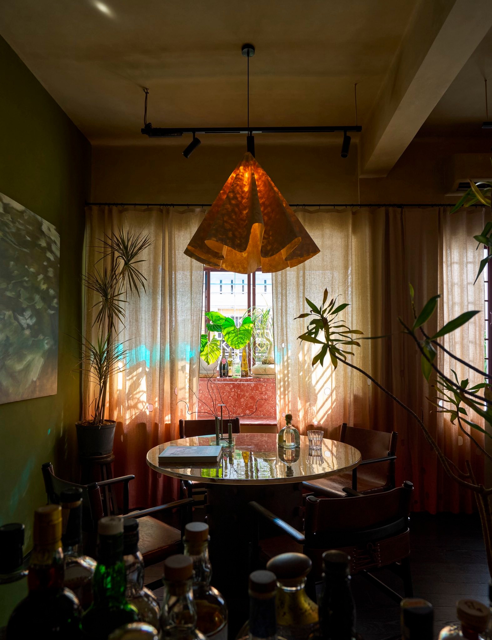 Dó paper, laminated in layers, holds onto its stains like water that hasn’t quite dried. Light passes through it no longer straight, but diffused, warm, and slow. Each fold becomes a stream paused mid-motion, suspended somewhere between falling and dissolving.