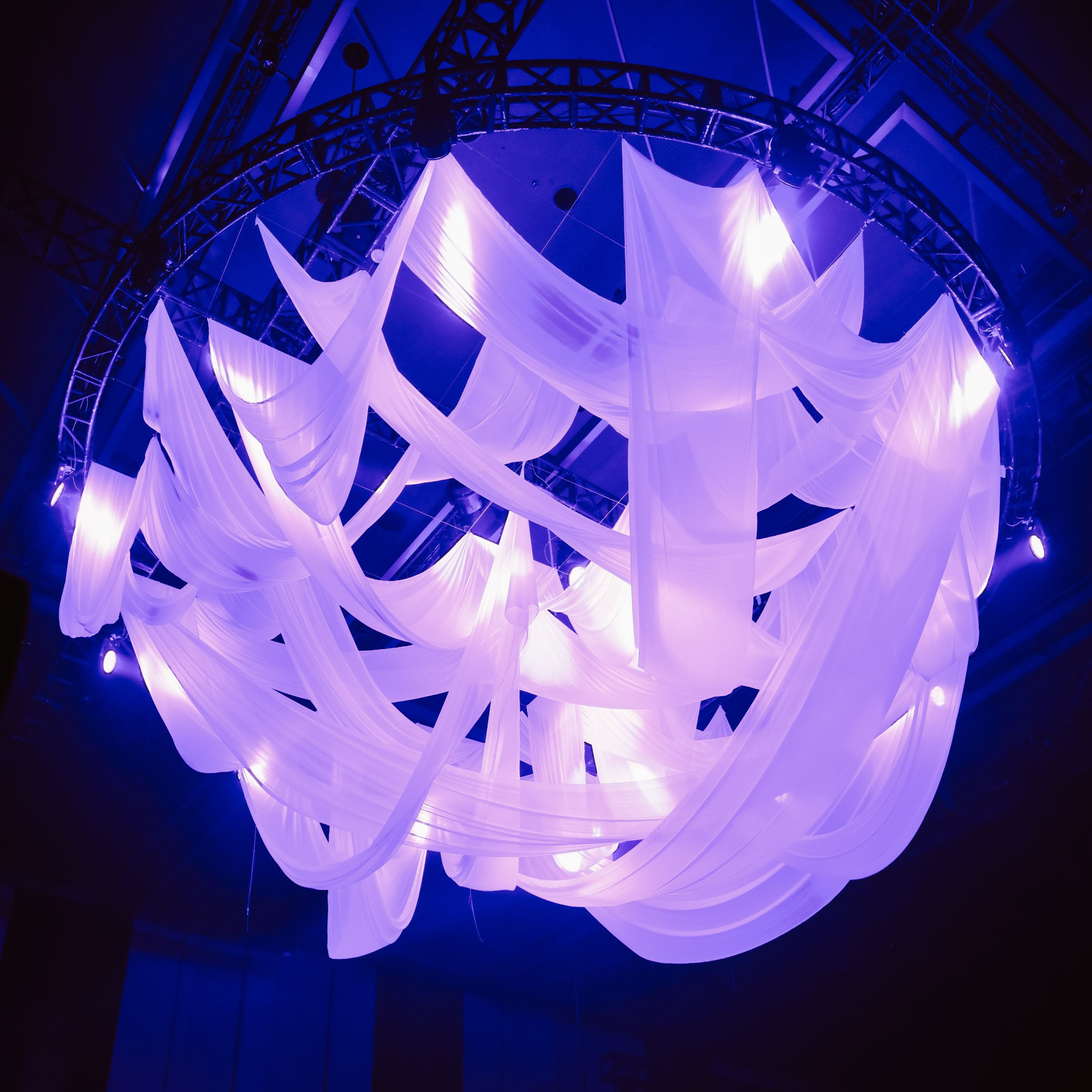 The dismantling was just as fast. Within a few hours, the site was returned almost to its original state. That was the strength of fabric. The longer we worked with it, the more we saw how it opened up many ways for spatial treatment and atmospheric effect. When combined with lighting, projection, and installation, fabric becomes one of the most versatile components for temporary events. Fabric can be a thin veil of silk, a partition wall, a projection surface, a backdrop, an artwork, or a temporary room, sometimes even the entire event space itself.