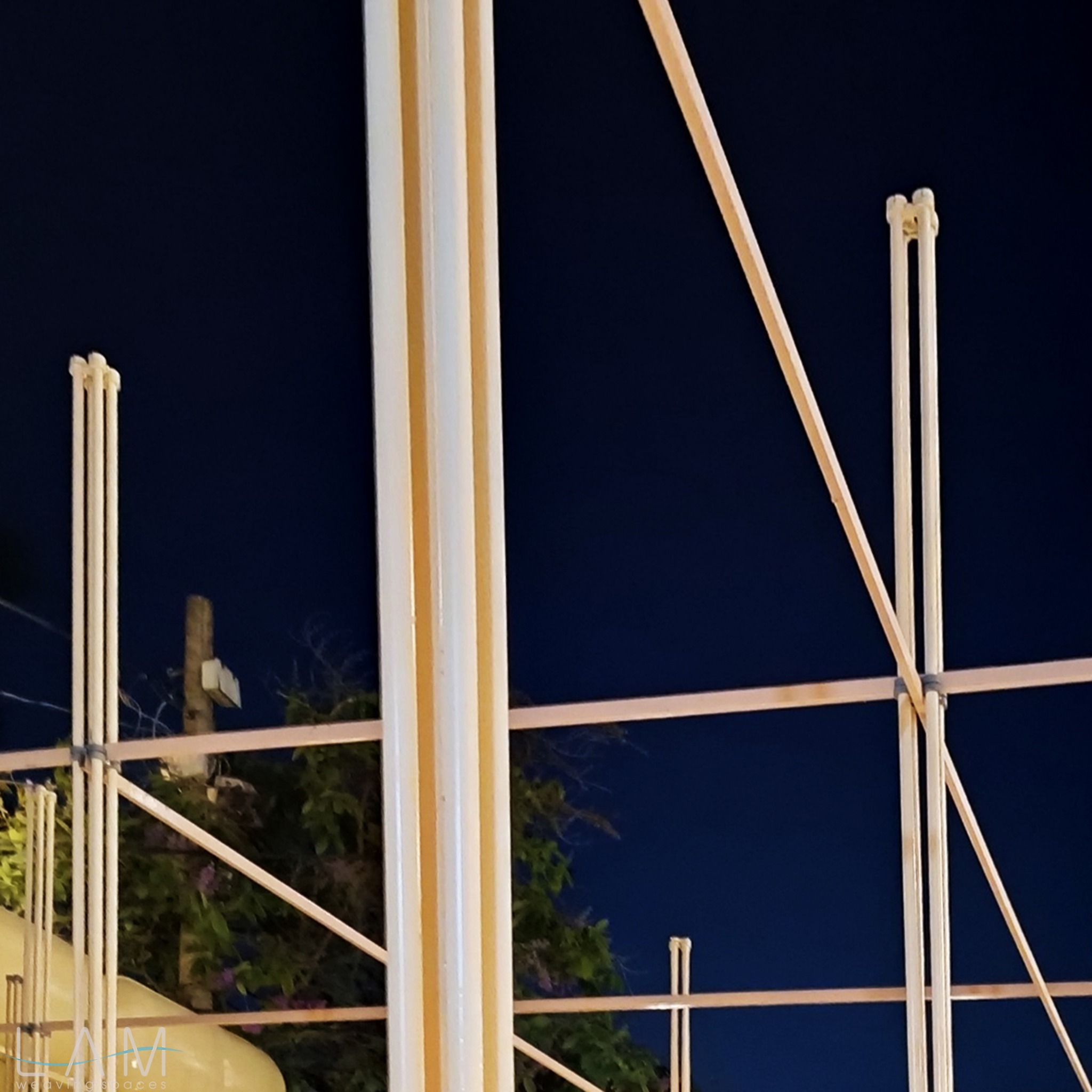 The translucent PVC material not only helps reduce heat and block direct sunlight but also adds a sense of openness and expansiveness to the space. The canopy provides a soft contrast to the rigid steel frame, while ensuring the area beneath remains cool and pleasant. This structure guarantees functional durability while adding an aesthetic highlight to the cafe area, offering customers a relaxing and comfortable experience.