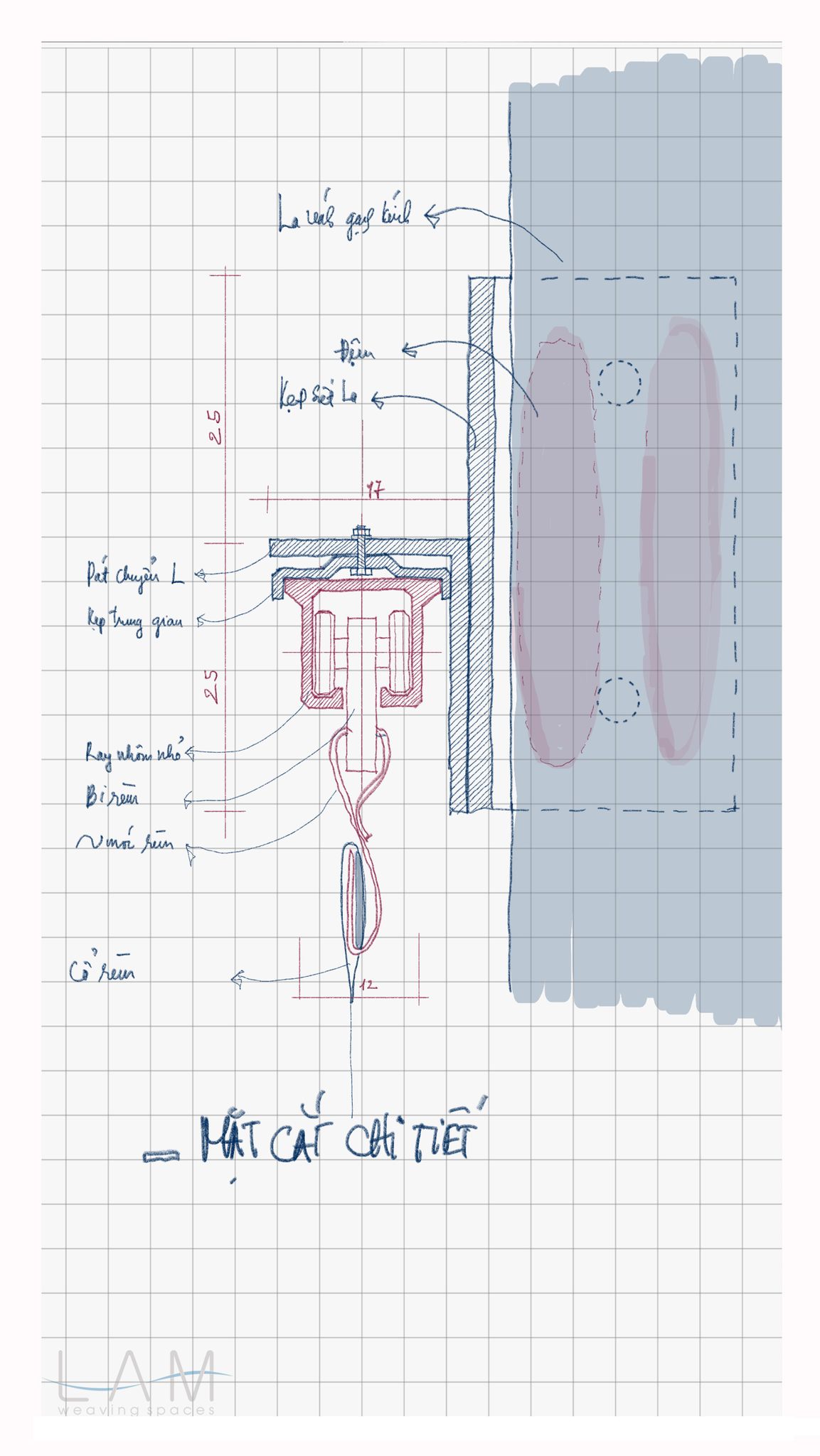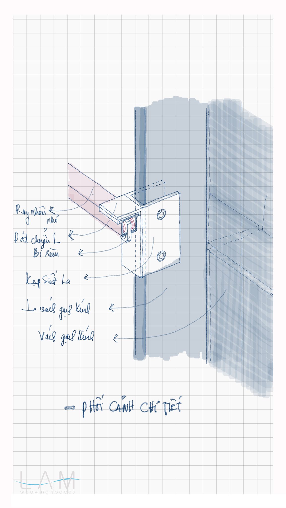 LAM had the chance to explore the furniture collections at nanoHome, studying the “smart joint” system of the USM Haller cabinet and the sophisticated wood-stitching technique of the Couture Armchair. We also visited the Nanoco building, recognized for its innovative design and materials, which offered valuable insights and inspiration for LAM’s collaboration with nanoHome. In terms of materials, the use of white raw silk fabric with detailed sewing was fitting for the space. However, it was the accessories that posed a significant technical challenge, prompting innovation within LAM’s team. Although these components were tiny and concealed within a narrow gap, they resolved multiple technical requirements simultaneously: Attached to the glass-block structural frame without drilling, cutting, or welding, and allowed flexible adjustment and complete concealment of the accessories within the 70mm gap between the glass blocks and the gypsum ceiling. The smallest rail profile in LAM’s system was used for this context. The installation process was efficient, minimizing noise and dust while meeting construction needs in a working environment.