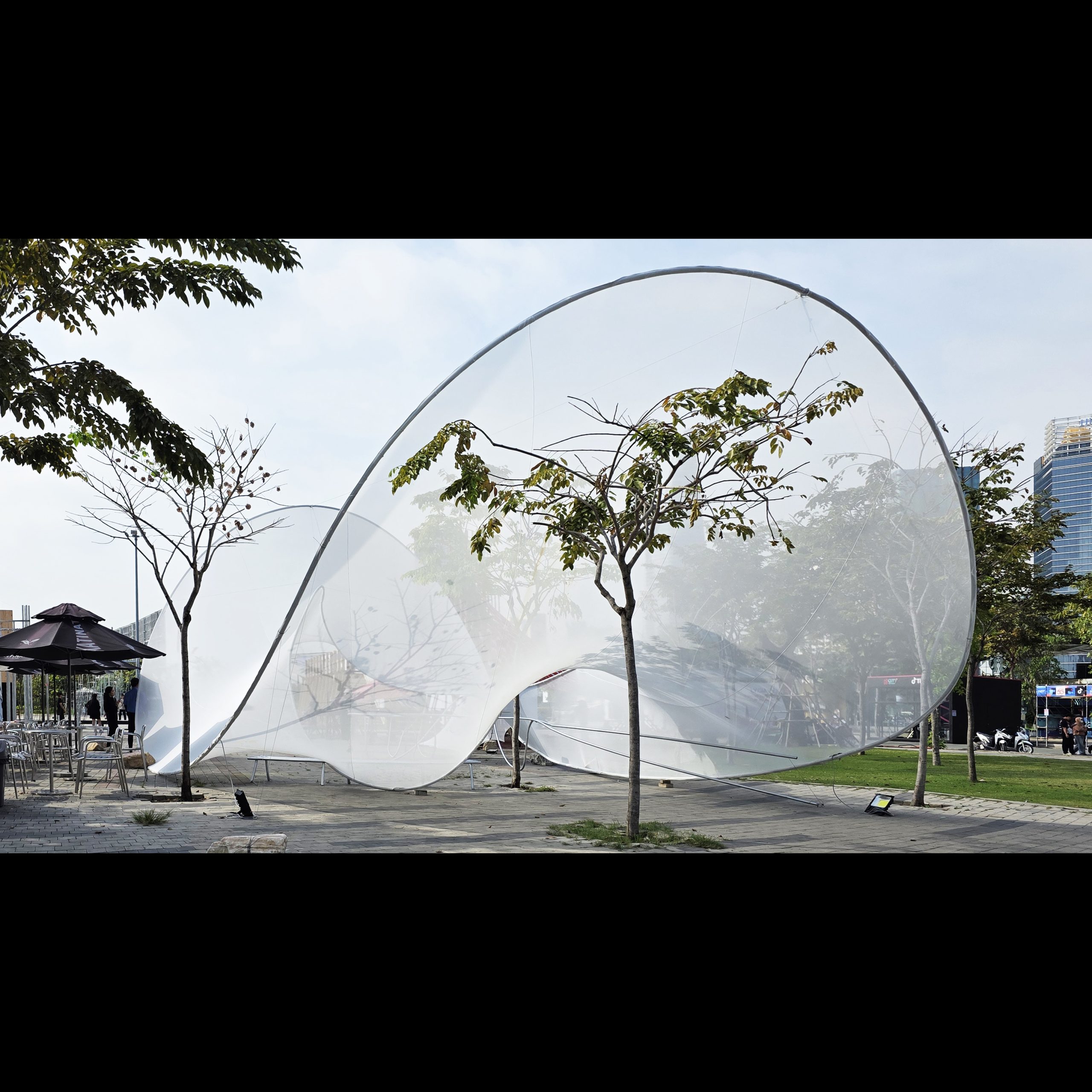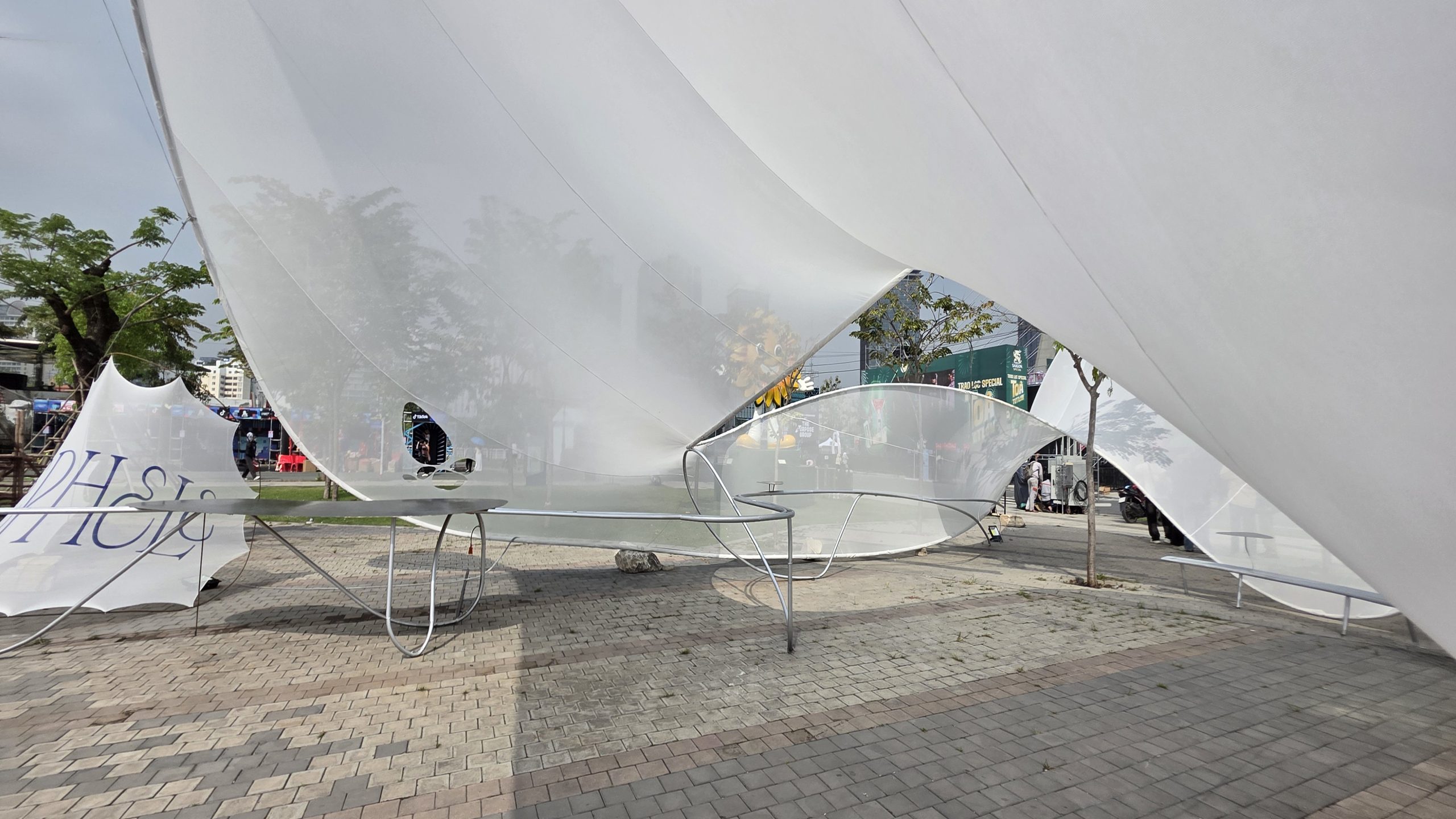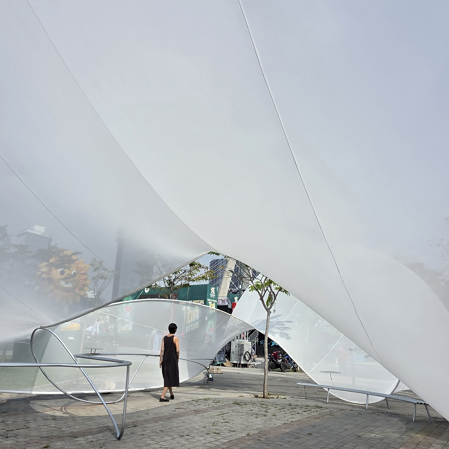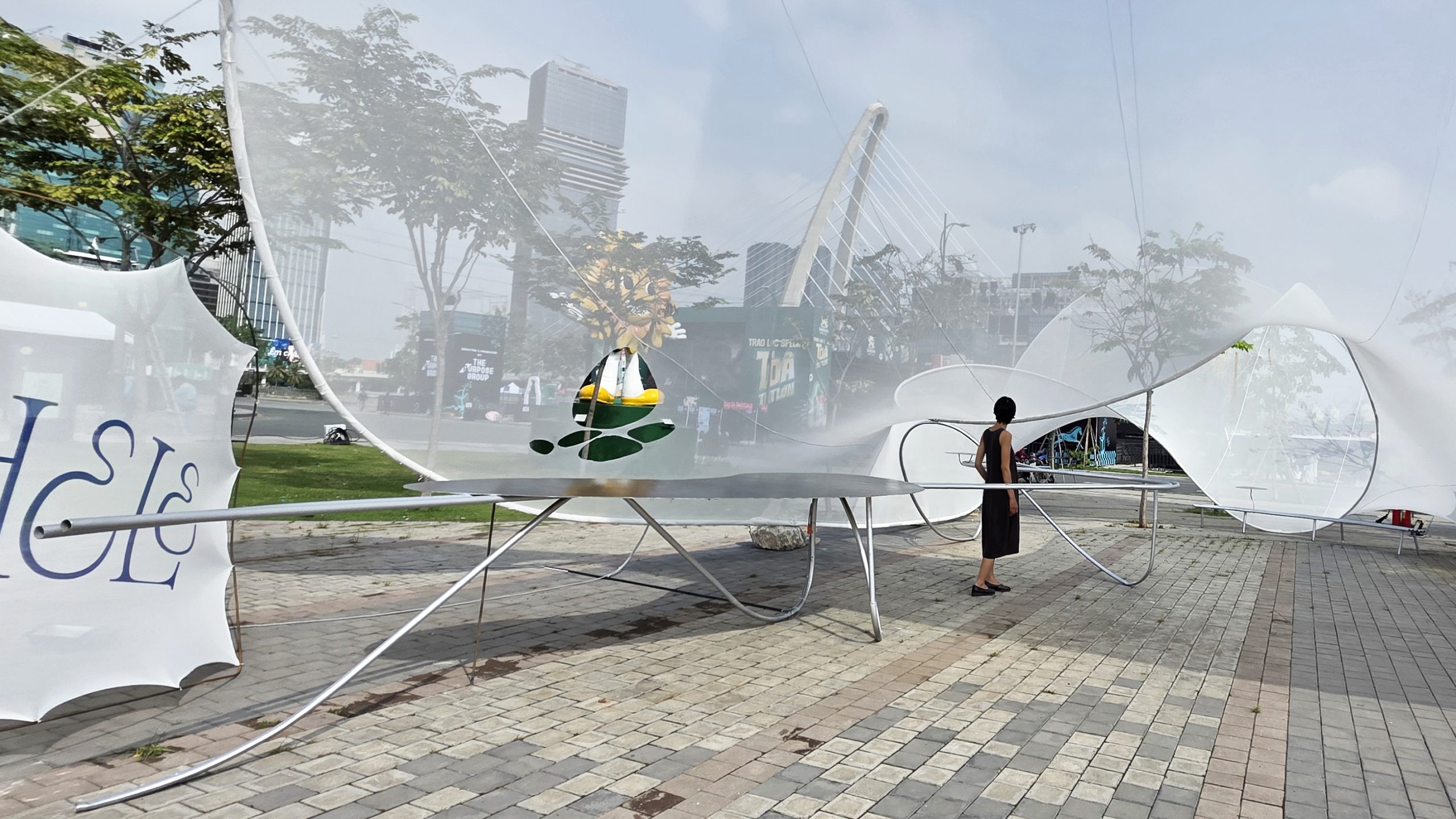 There is a striking moment when an airplane cuts through towering masses of clouds, dense and almost solid, before suddenly emerging into a calm, open sky. Then the cycle begins again. The sky closes and opens, compression gives way to release. This pavilion was conceived not only as a response to the identity of Nephele Restaurant, but also as a gateway marking the entrance to the entire Mê Vị complex. A large cloud-like form with a relatively low entrance invited visitors to slightly bow as they passed through. Immediately after, the space opened into a different condition at its center. Moving through this cloud becomes a threshold into the broader Mê Vị experience. Beyond it, the pavilions unfolded one by one, each carrying its own story and spatial language. Like a cloud itself, the form and character of the pavilion were shaped by its surrounding context. In the process of searching for balance, LAM repeatedly adjusted the structure directly on site, seeking a state that could harmonize with the environment while guiding the emotional sequence of the space. Technique, in this sense, became the means to reach the most delicate and exhilarating points of contact. The careful refinement of the structure was a slightly daring experiment, yet precisely the kind of challenge that invited a sense of discovery and conquest.