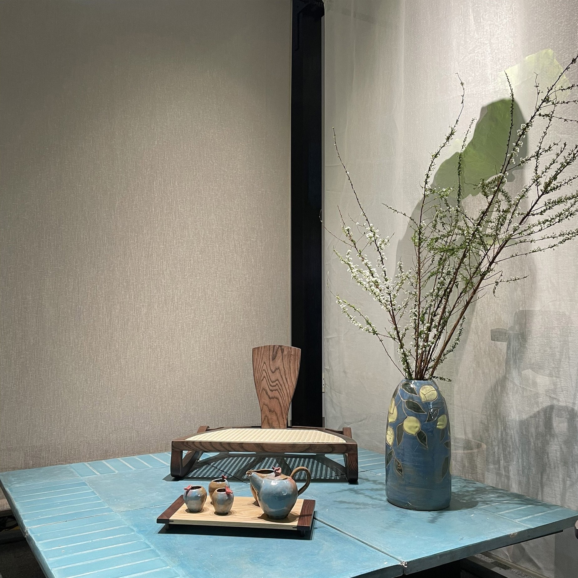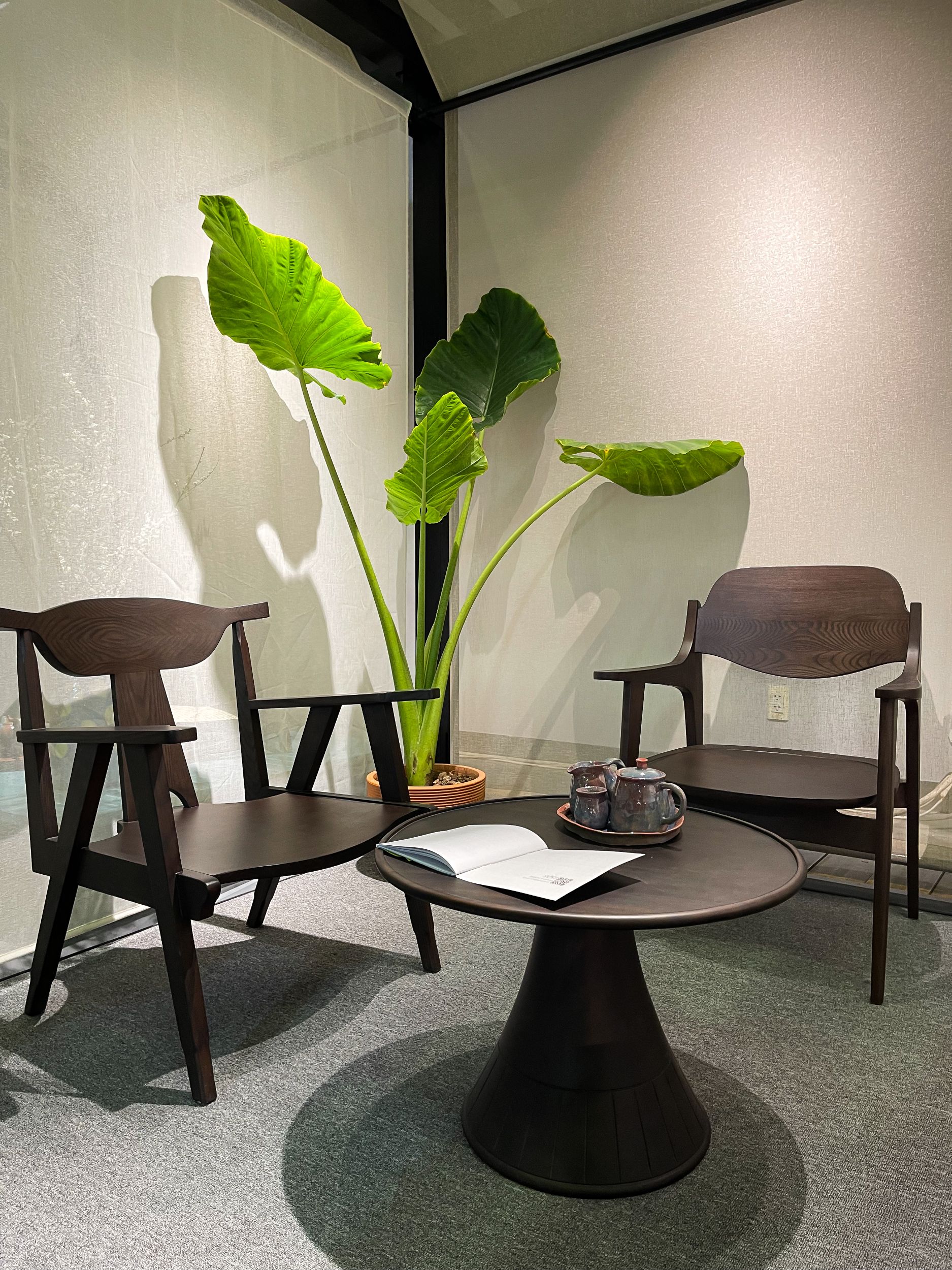 The neutral, soft tones of the curtains blend harmoniously with S.norm’s minimalist, rustic style, highlighting the airy and serene ambiance of the space. This arrangement allows natural light to flow through, creating a warm and inviting atmosphere while maintaining a seamless connection between different areas. Overall, the thoughtful use of curtains contributes to a cozy and welcoming environment, enhancing the overall experience for visitors.